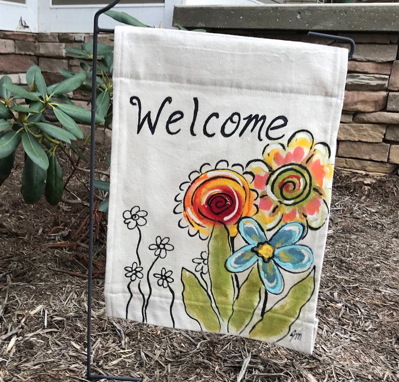 Source Image @ Welcome Sign, Hand-painted Flags, Flower Garden Decor, Gardener's Gift, Garden Flag, Yard Decorations, Holiday Signs, Yard Art, No. FLG21 Download ImageOpen new tab